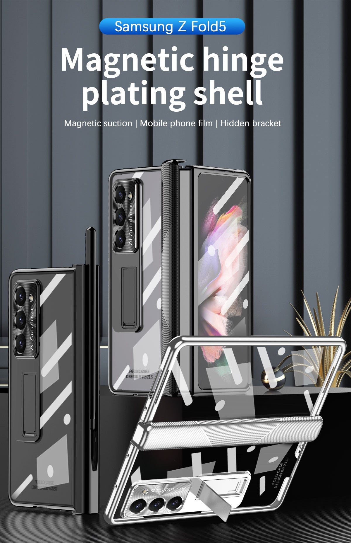 Magnetic Hinge Plating Case For Galaxy Z Fold5 with Double Hinge Protector