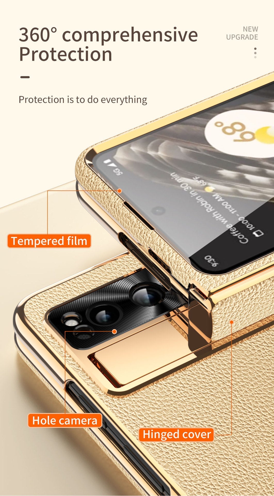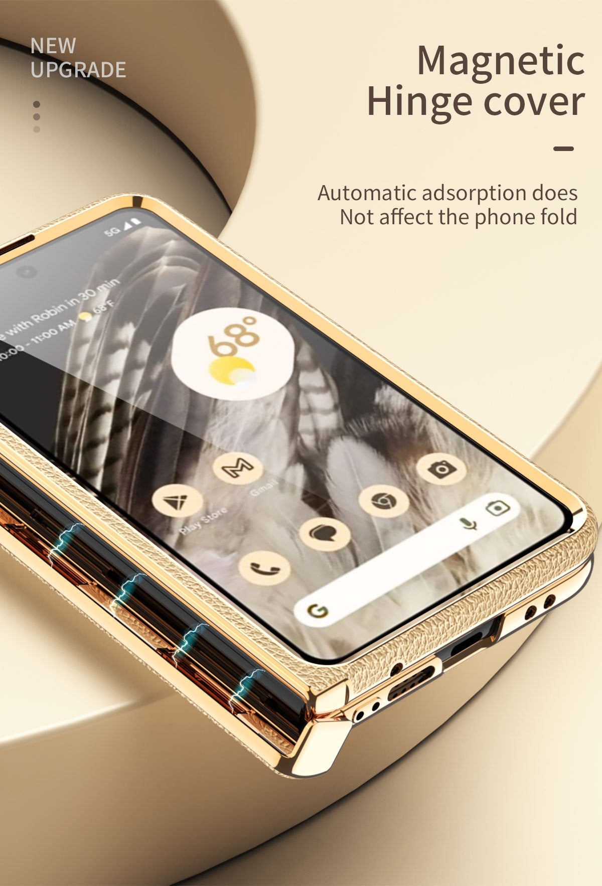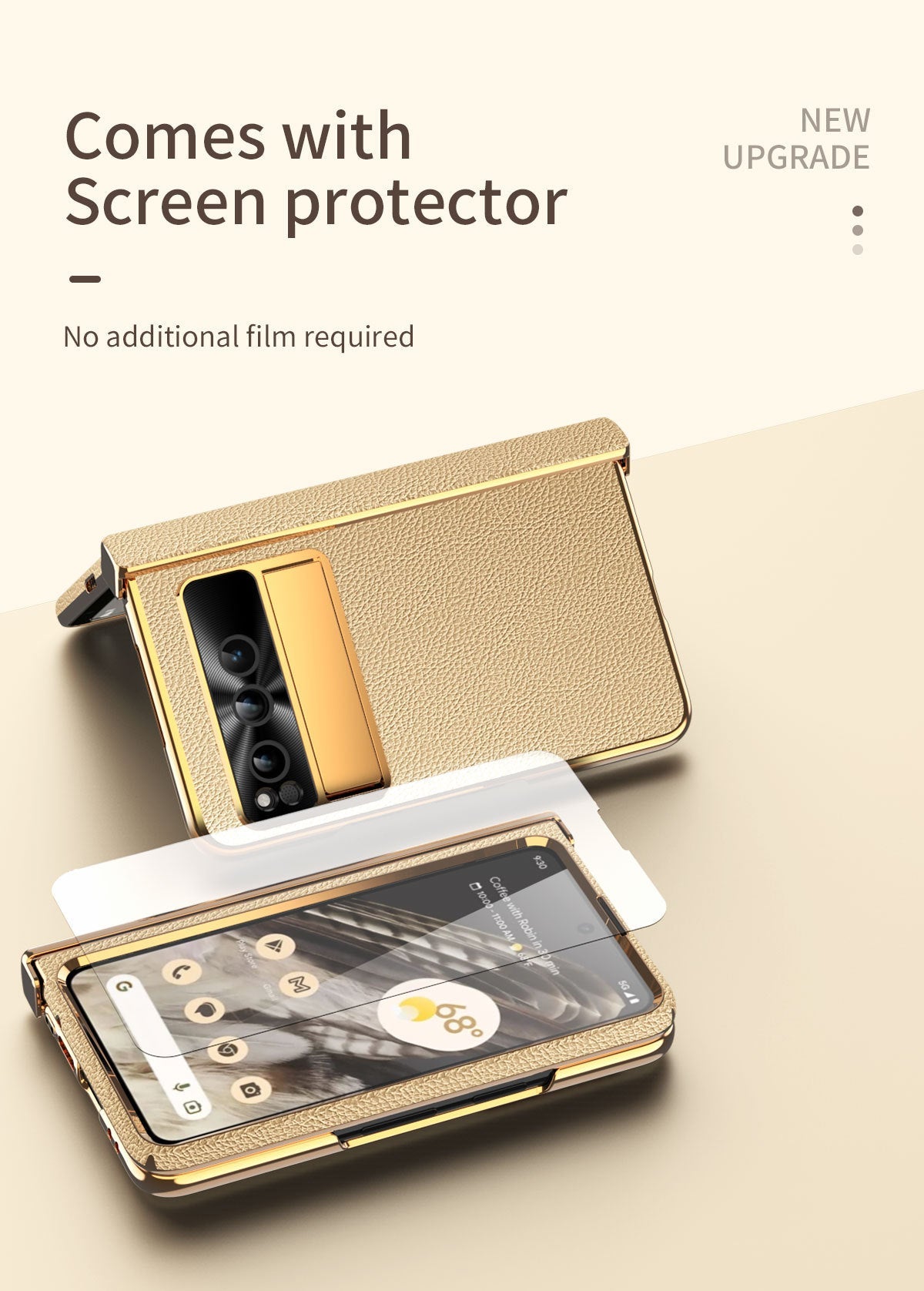 Ultra-thin Leather Electroplating Google Pixel Fold Case All-Inclusive Hinge with Screen Protector