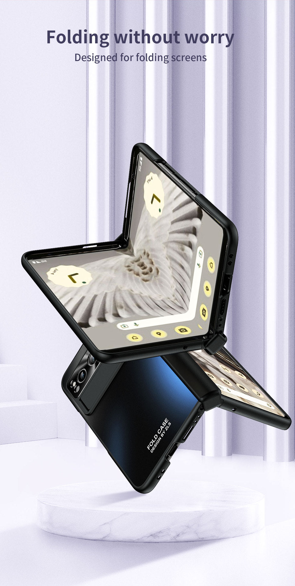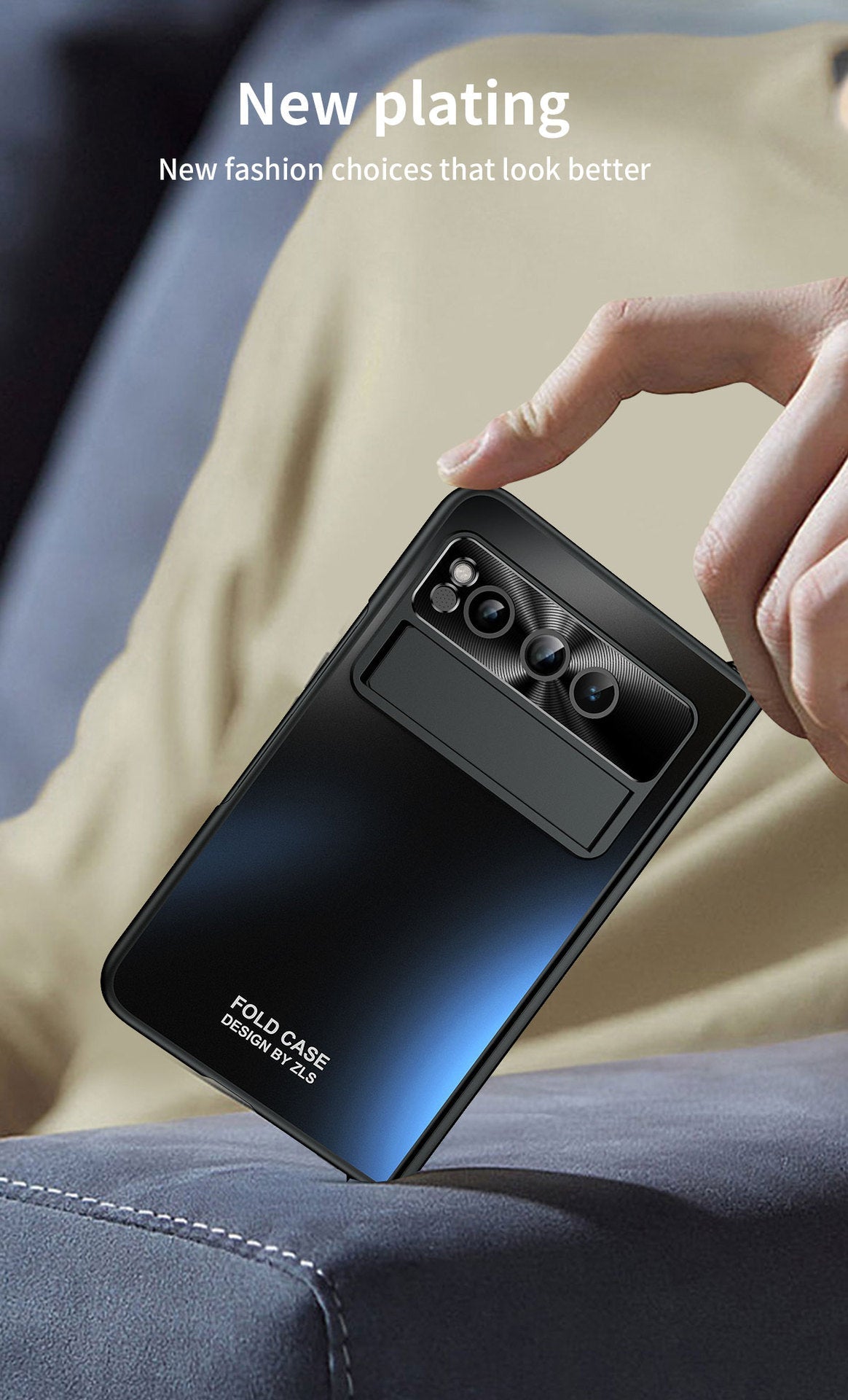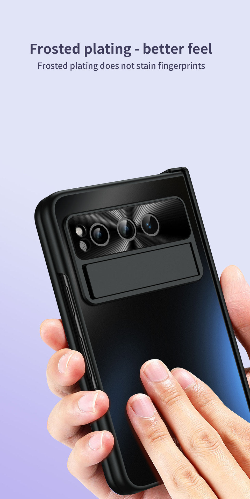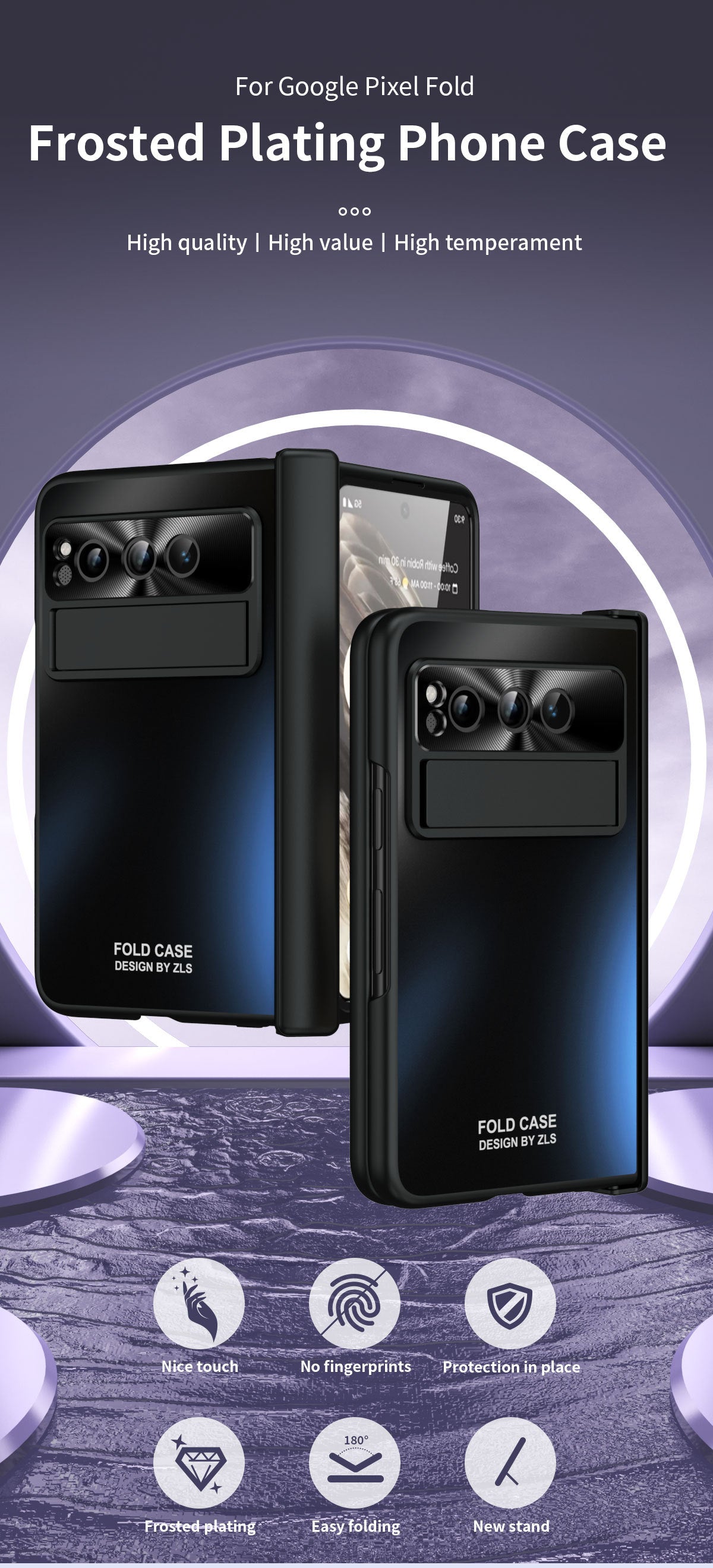Frosted Plating Google Pixel Fold Case with Hinge Protector Screen Protector and Hidden Kickstand