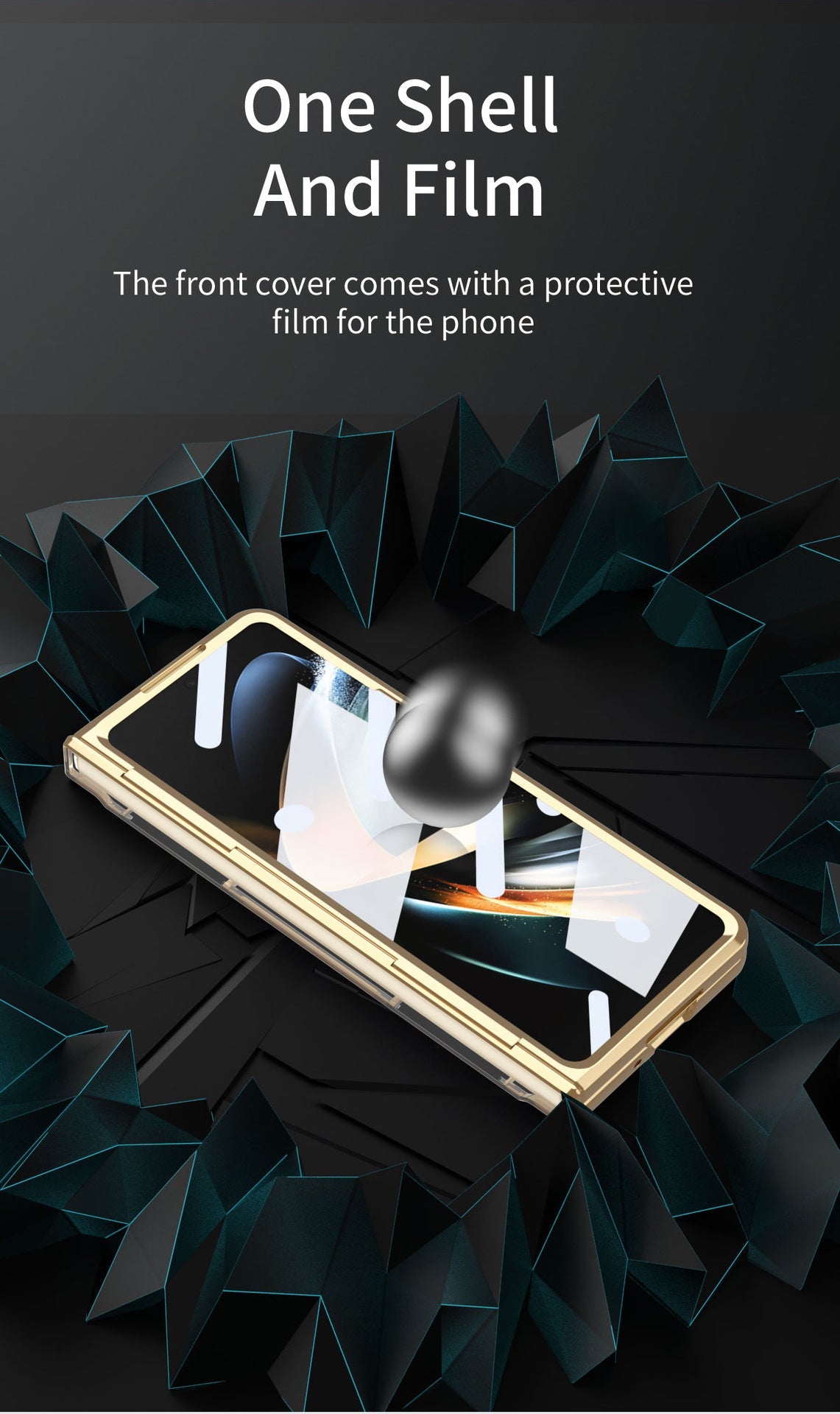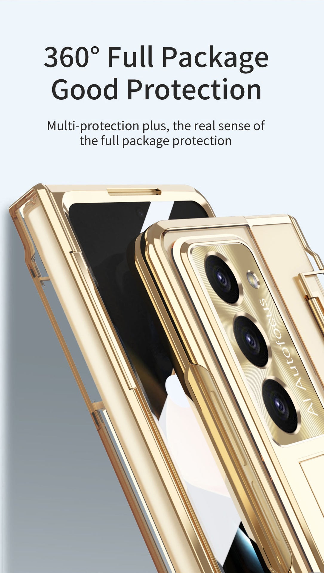 Electroplated Clear PC Galaxy Z Fold5 Case with Front Screen Protector & Flat Hinge & Hidden Stand