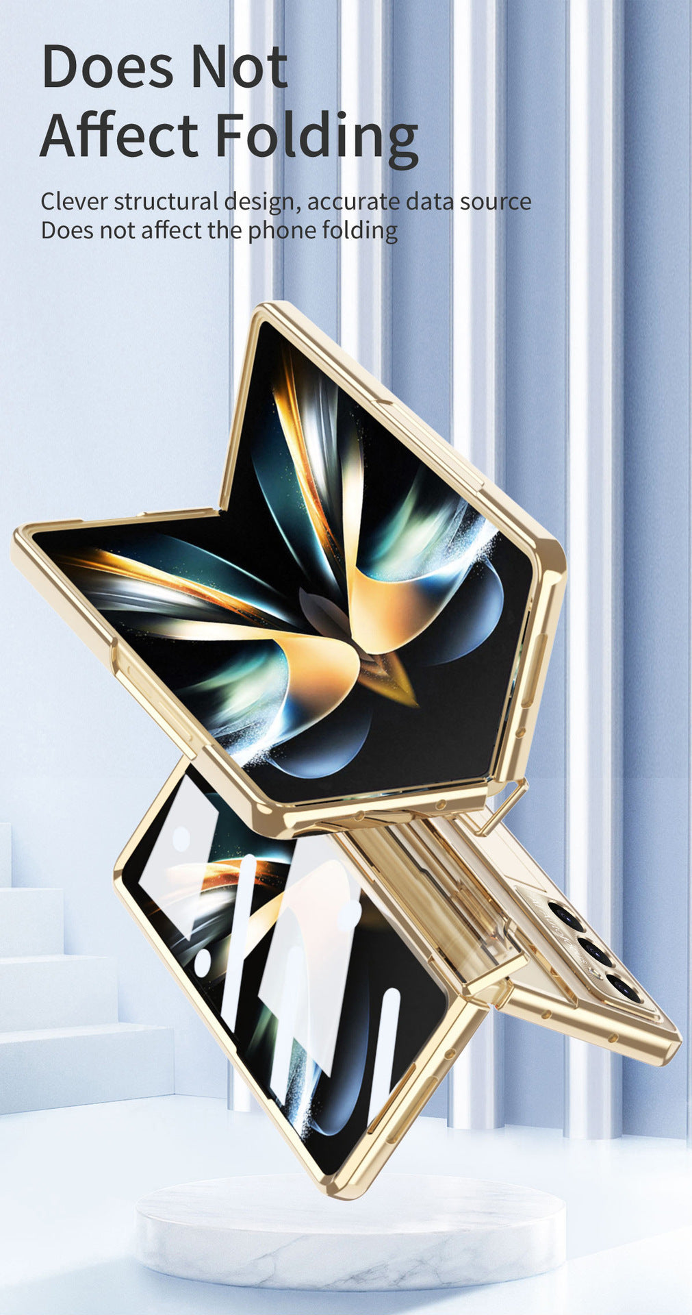 Electroplated Clear PC Galaxy Z Fold5 Case with Front Screen Protector & Flat Hinge & Hidden Stand And Pen Slot and Free Stylus