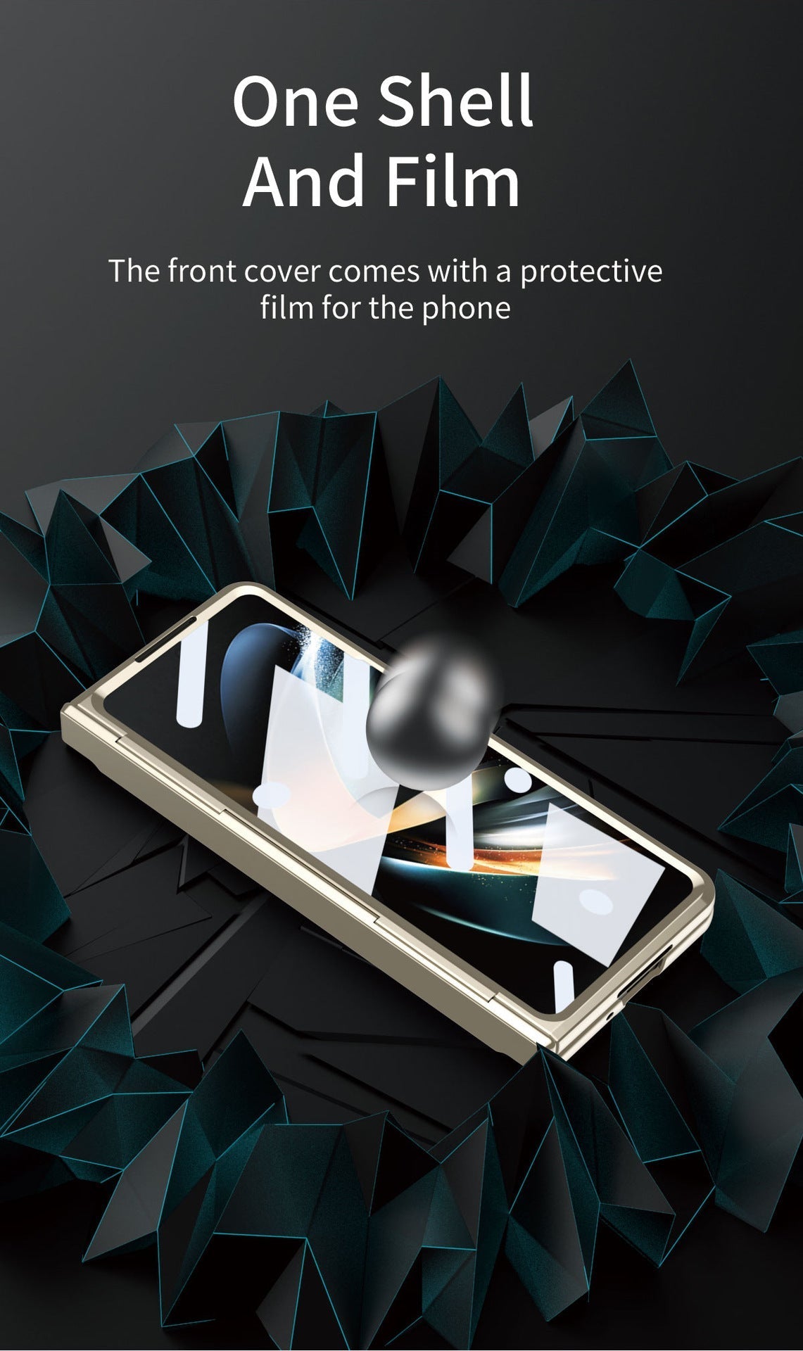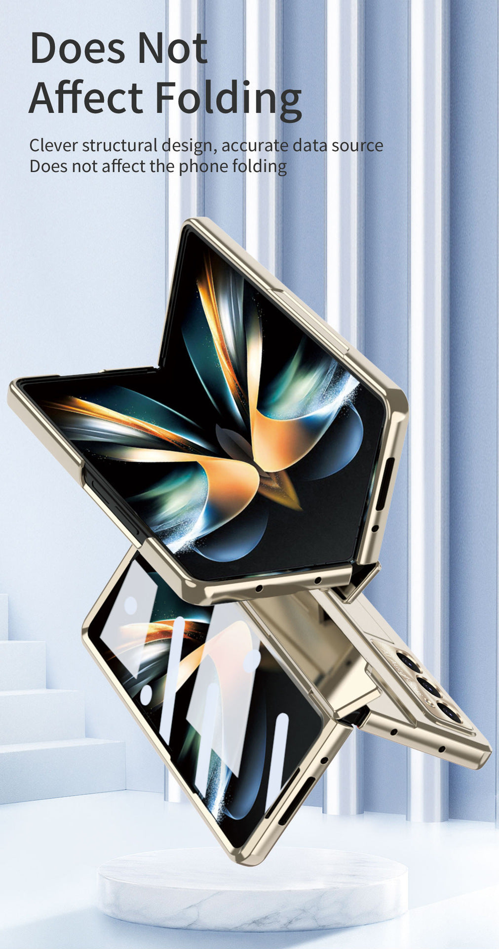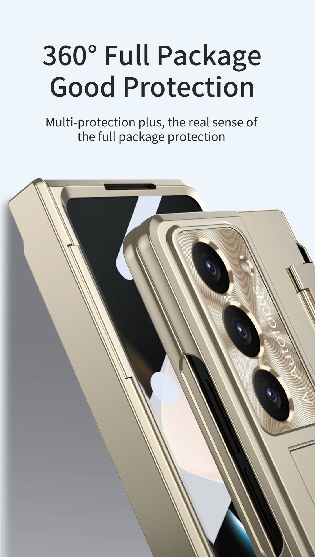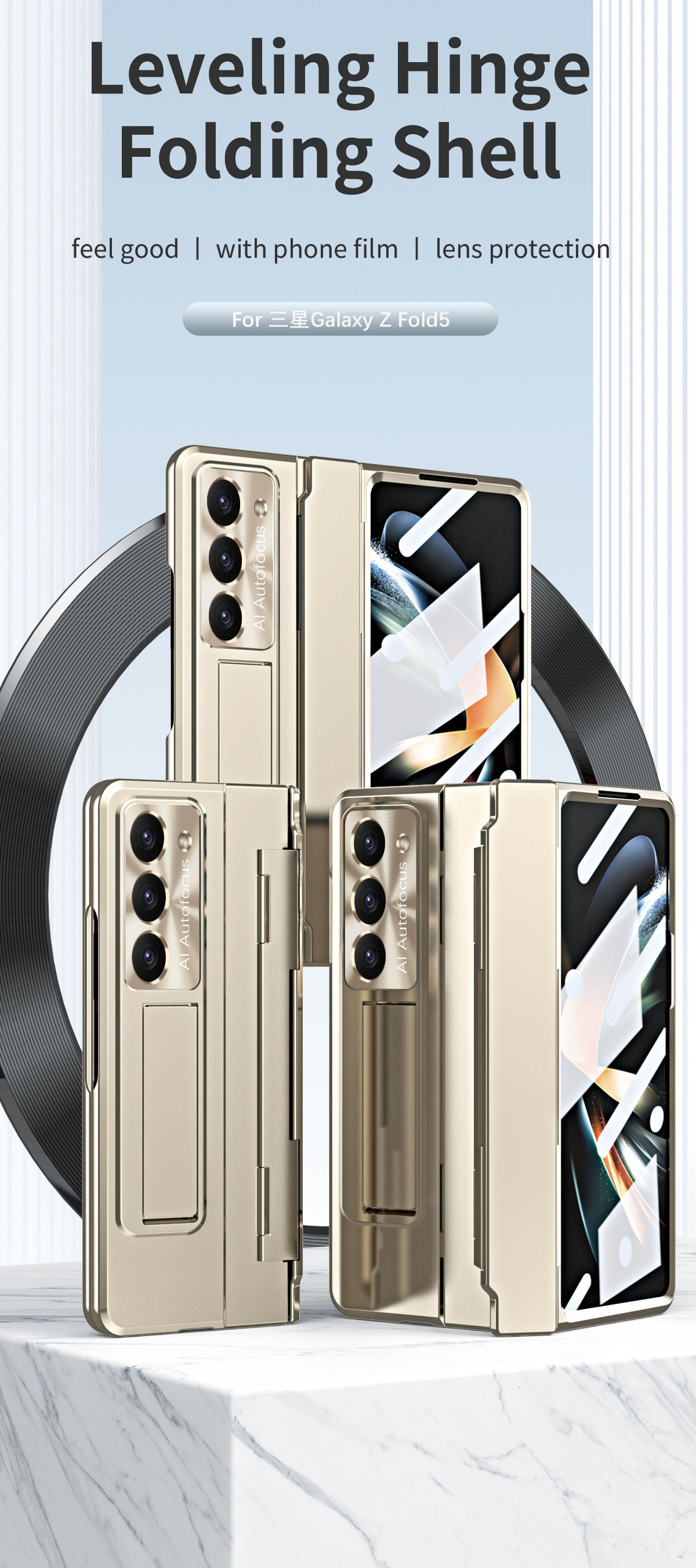 Plated Galaxy Z Fold5 Case with Front Screen Protector & Flat Hinge Protection & Hidden Stand