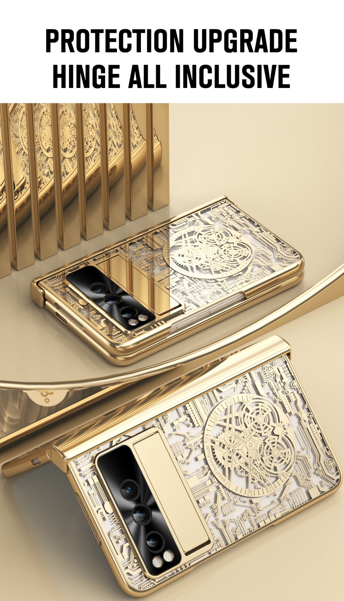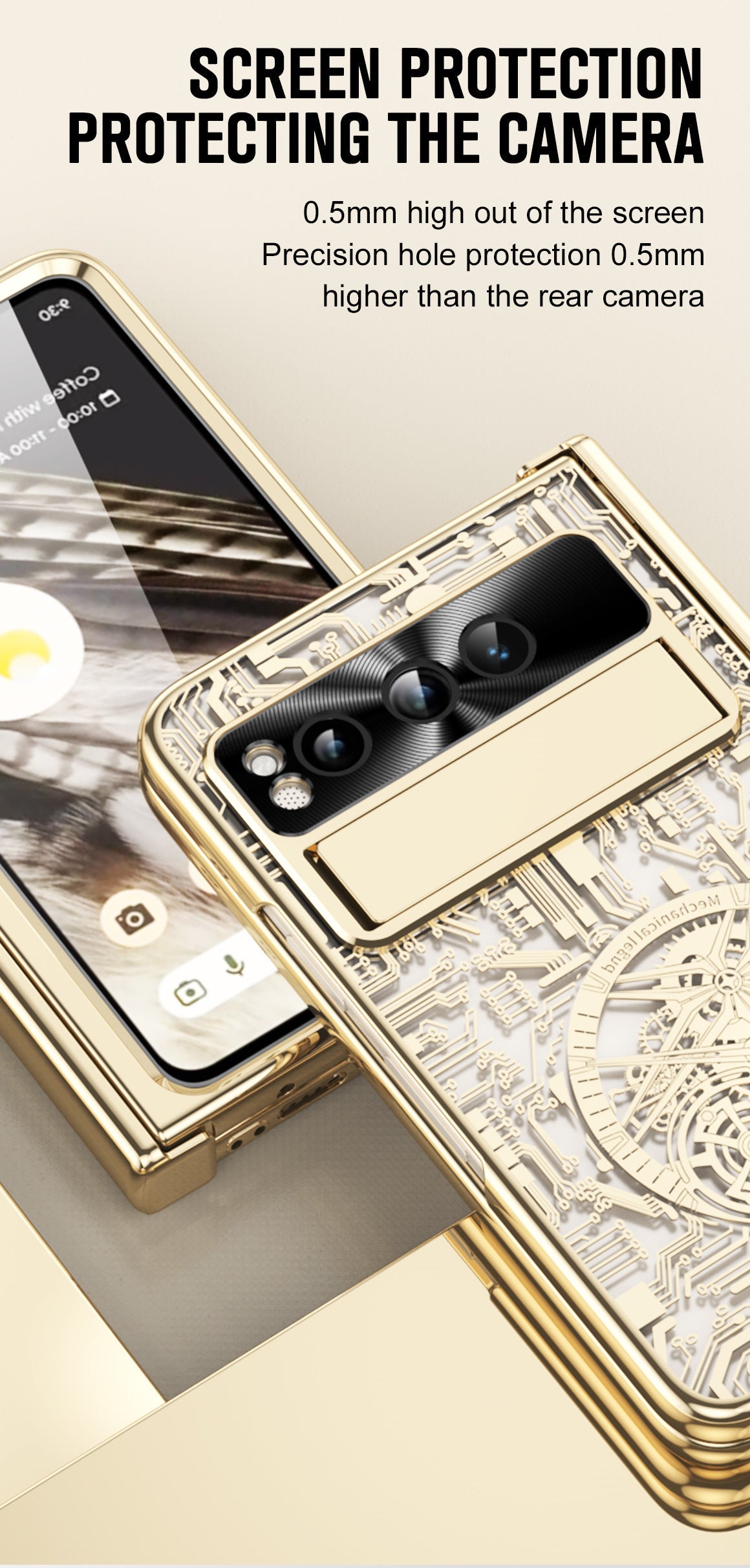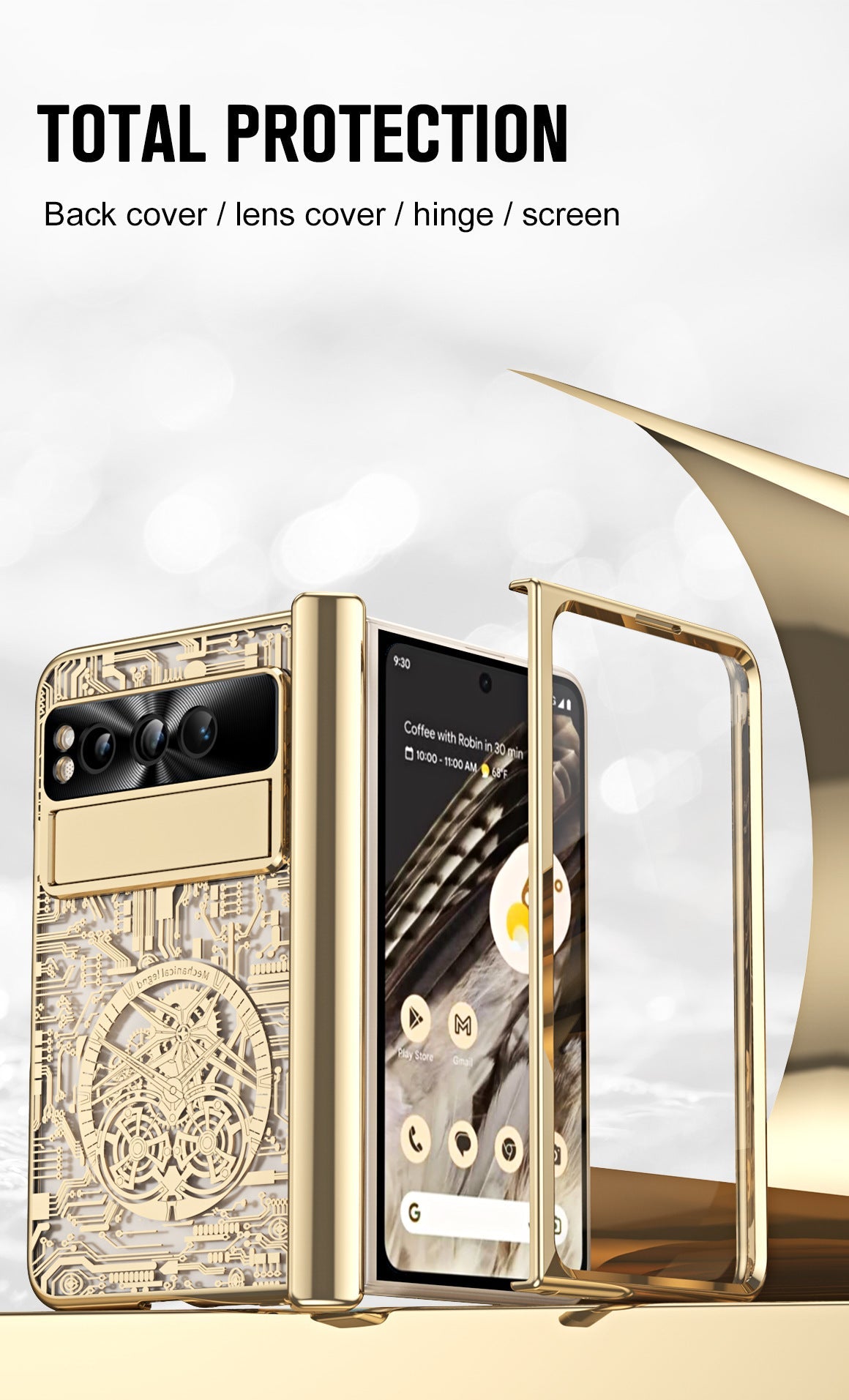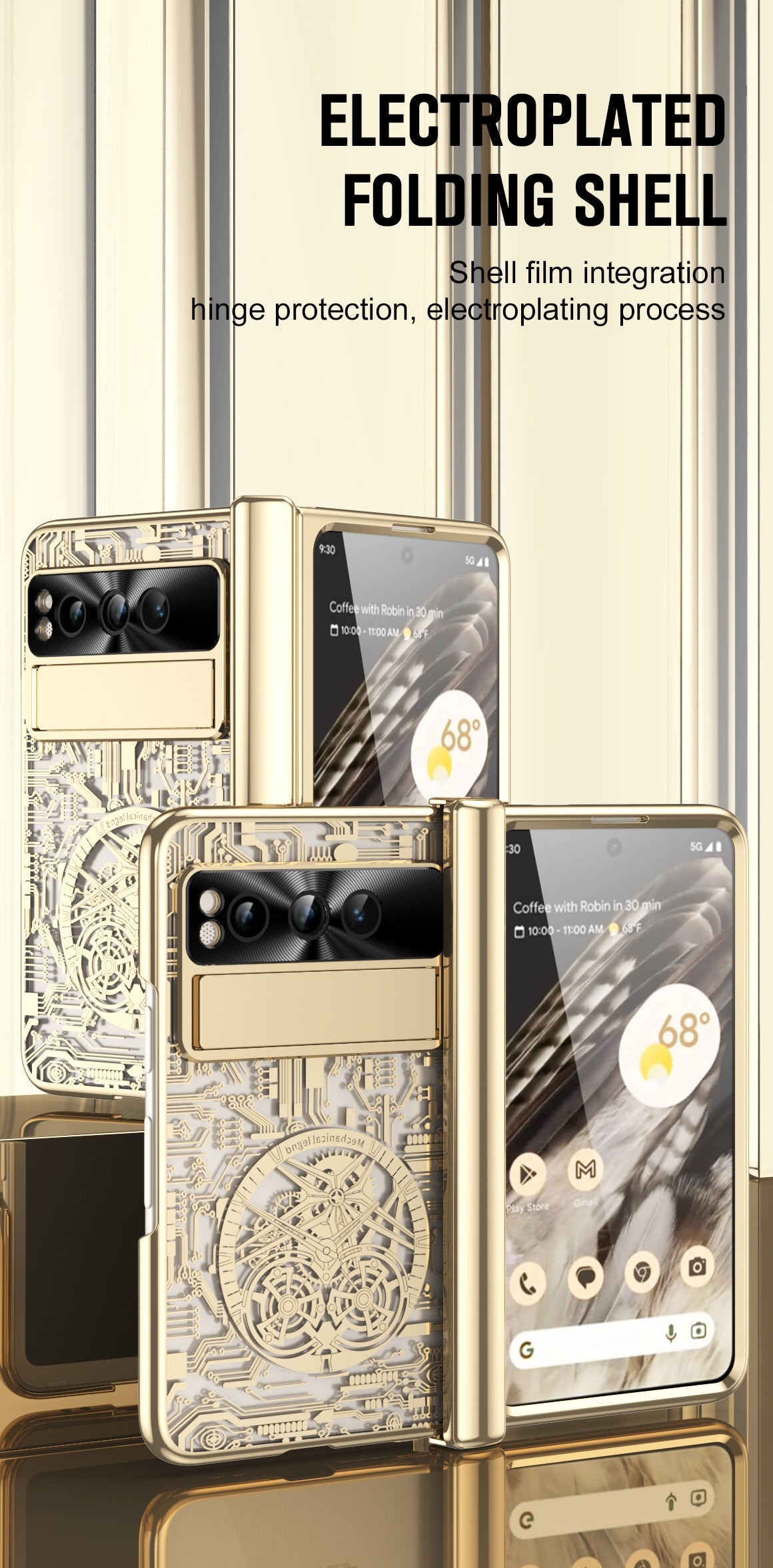 Electroplating Google Pixel Fold Case All Inclusive Double Pen Tray Hinge with Screen Protector and Free stylus