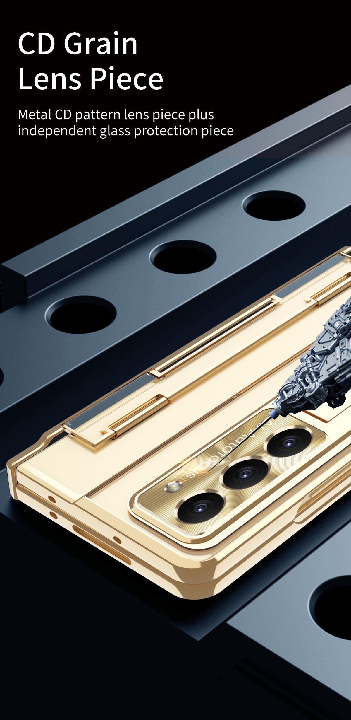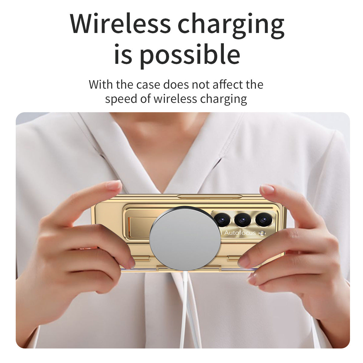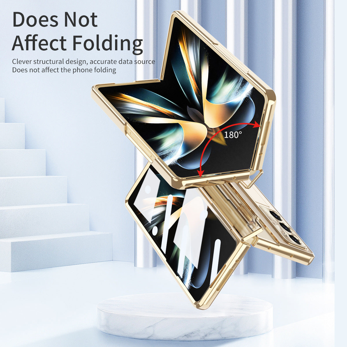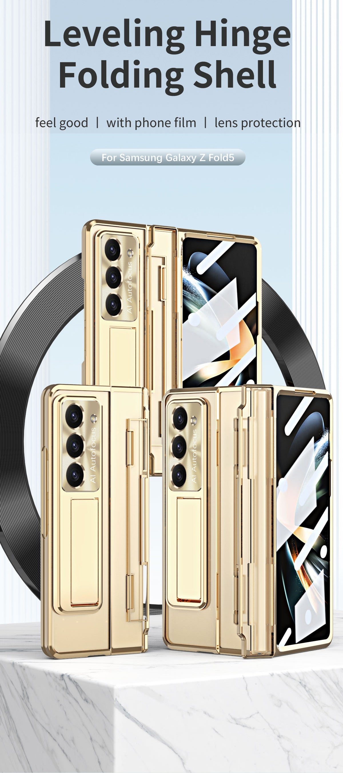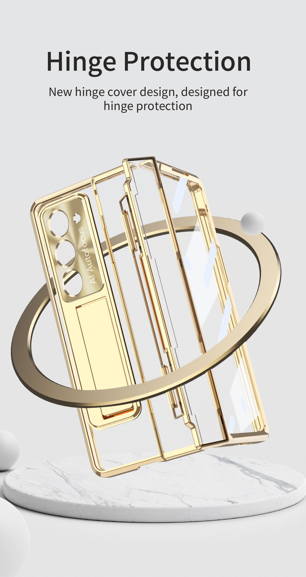 Plated Transparent Galaxy Z Fold5 Case with Front Screen Protector & Flat Hinge Protection & Kick-Stand